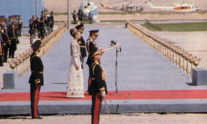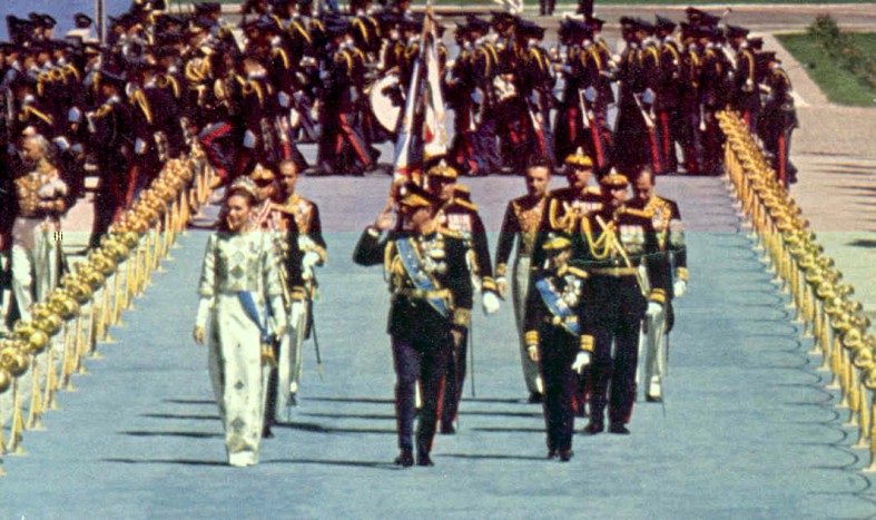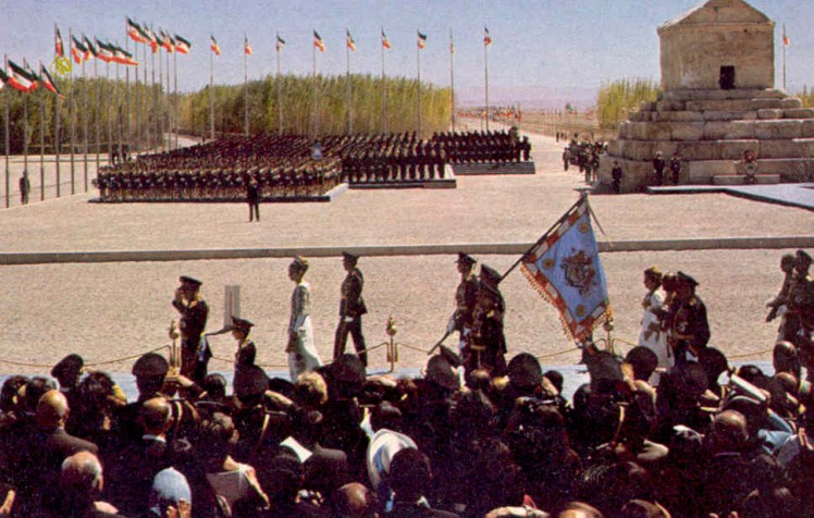 The opening of the celebrations of the 2500th anniversary of the Persian Empire took place on the 12th October 1971 in Pasargadae, the ancient capital of the time of Cyrus the Great, the founder of the Empire, who was buried there in a simple but remarkable tomb. The ruins of Pasargadae had been arranged for the ceremony: hundreds of trees had been planted around Cyrus tomb and the ground had been specially prepared to allow the hundreds of military to form their regiments; a long blue carpet had been set from the place where the imperial helicopter would arrive towards the front of the tomb, forming an “L”. In the intersection of the two parts of the carpet was a red carpet, where the Imperial Family would stand during the Shah’s Speech, which would mark the opening of the celebrations.